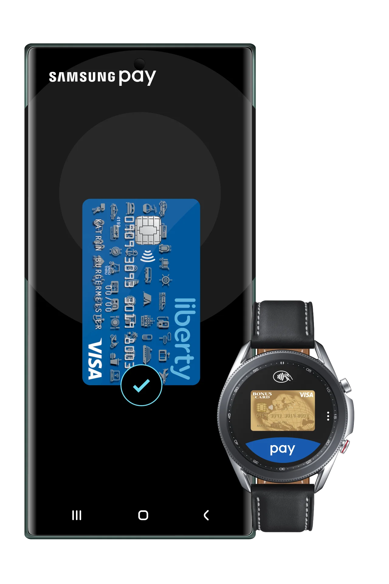 Ihre Karte von BonusCard mit Samsung Pay funktioniert weltweit überall dort, wo kontaktlos mit Kredit- oder Prepaidkarten bezahlt werden kann.